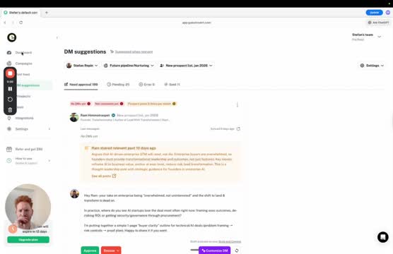 Most salespeople with long sales cycles are losing deals they've already started. You spent months building relationships. Had great conversations. Then... silence. The prospect goes dark. You move on. But here's the thing—they're still in-market, still have the problem, still need a solution, life is just too effing busy. You just fell off their radar. I personally effing hate this! If somebody does not answer, I feel a huge disrespect, in case like this I have to tell myself, calm Stefan! They did not mean to hurt you! To solve this I've been testing Extrovert for the past few months and it's solving a massive problem: keeping deals alive that would otherwise die in your CRM. Here's what actually works for long sales cycles: 1- Restart conversations with leads you've forgotten about The biggest mistake in enterprise sales? Assuming a dead lead is actually dead. ↳ Every week I'm getting 5-10 active conversations restarted with leads I'd completely forgotten about. ↳ The tool analyzes your existing conversations and suggests natural ways to re-engage. ↳ It's not cold outreach—it's rekindling relationships that already exist. ↳ These aren't new leads. They're warm opportunities you already invested time in. This alone has changed how I think about pipeline management. 2-Influence through strategic commenting (not just direct outreach) Robert Cialdini taught us the difference between persuasion and influence. You can't just pitch—you need to be visible. ↳ GoExtrovert identifies which prospects in your pipeline are posting content. ↳ It suggests thoughtful comments in your voice (not generic AI garbage). ↳ Your prospects see you're engaged, knowledgeable, and present. ↳ This works especially well with consultants who get high visibility. When your ICP sees you commenting intelligently on their feed, you're building influence before the next call. 3-Pair your comment strategy with cold outreach Here's what most people get wrong: they think commenting OR outreach. It's AND. ↳ Use commenting to warm up cold accounts before reaching out. ↳ Stay visible to existing deals through consistent, valuable comments. ↳ Create multiple touchpoints without being annoying. ↳ Think of it as air cover for your ground game. The best results come from an integrated approach—not choosing one channel. 4-Organize prospects by who you need to influence vs. sell to Not all prospects serve the same purpose in your sales motion. ↳ Some are decision-makers you need to close. ↳ Others are influencers (marketing, sales leaders) who can advocate for you. ↳ Create separate lists and engage differently with each group. ↳ Track posting frequency to prioritize who to engage with. I'm doing a webinar soon with Oleg Sobolev from Extrovert where we'll dive deep into: → Restarting old conversations that went cold → Rekindling closed/lost opportunities → The new LinkedIn commenting strategy and how to maximize results Stay tuned for details.